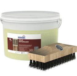 Účinný hustý čistiaci gél. Odstraňuje zvyšky pôvodných olejov, znečistenie, huby, mach, zošednuté sfarbenie a iné. Nakoľko sa jedná o gélovú konzistenciu nesteká a ľahko sa nanáša aj na fasádne obklady a drevený nábytok. Je biologicky rozložiteľný. SET obsahuje - čistič + kefu Remmers Spezial-Schrubber