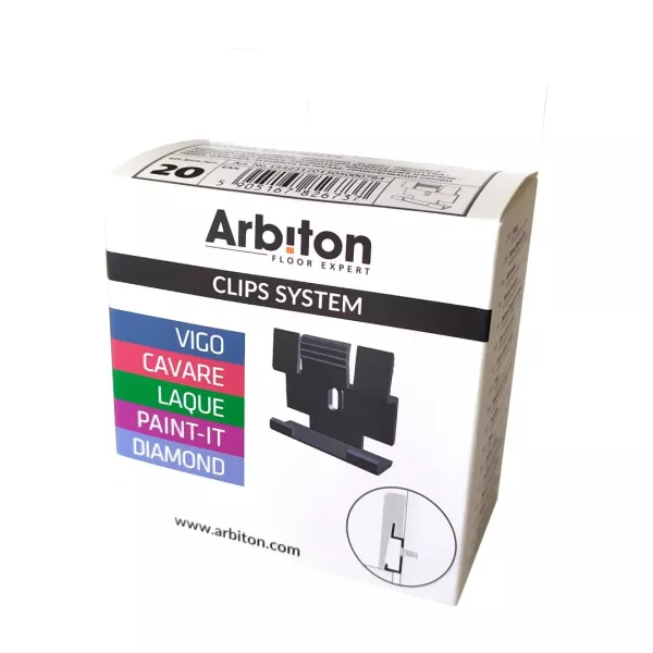 Úchyt Arbiton je praktickým riešením na upevnenie líšt série VIGO, CAVARE a PAINT IT, pričom balenie obsahuje všetko potrebné na montáž, 20 plastových úchytov, skrutky a hmoždinky. Tento systém umožňuje pevné a jednoduché uchytenie líšt na stenu, ideálne pre inštaláciu v odporúčaných intervaloch.