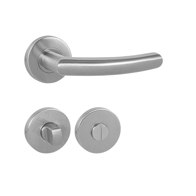 Rozetová kľučka na interiérové dvere s okrúhlou rozetou z vysokokvalitnej nehrdzavejúcej ocele, známej ako nerez.