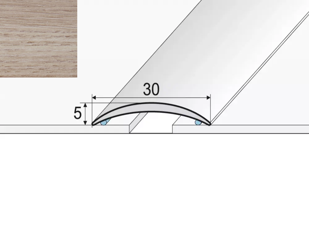 Prechodový profil A03 je určený na prechod medzi jednotlivými druhmi podláh. Maximálne preklenutie výškového rozdielu je 3mm.