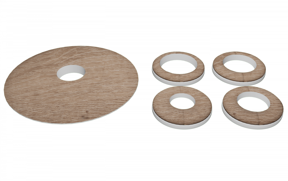 Vyrábajú sa vo farbách imitujúcich vzhľad a odtiene dreva. Slúžia na prekrytie dilatačnej medzery medzi parketou a rúrkami vykurovania. Dodávajú sa v balení 2 ks s univerzálnymi vložkami čím je ich možné použiť pre viaceré priemery vykurovacích rúrok o rozmeroch 15mm, 18mm a 22mm.
