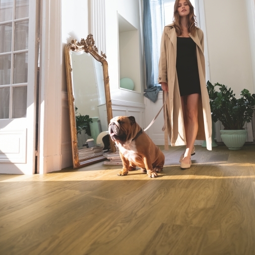 Prvá vodeoodlná a vodotesná drevená podlaha. Vychutnávajte si život plnými dúškami. Naše odolné drevené podlahy sú ako stvorené pre zábavu pri kúpaní s deťmi, večery s priateľmi aj hranie s domácimi maznáčikmi. Naviac vydržia dôkladné čistenie.