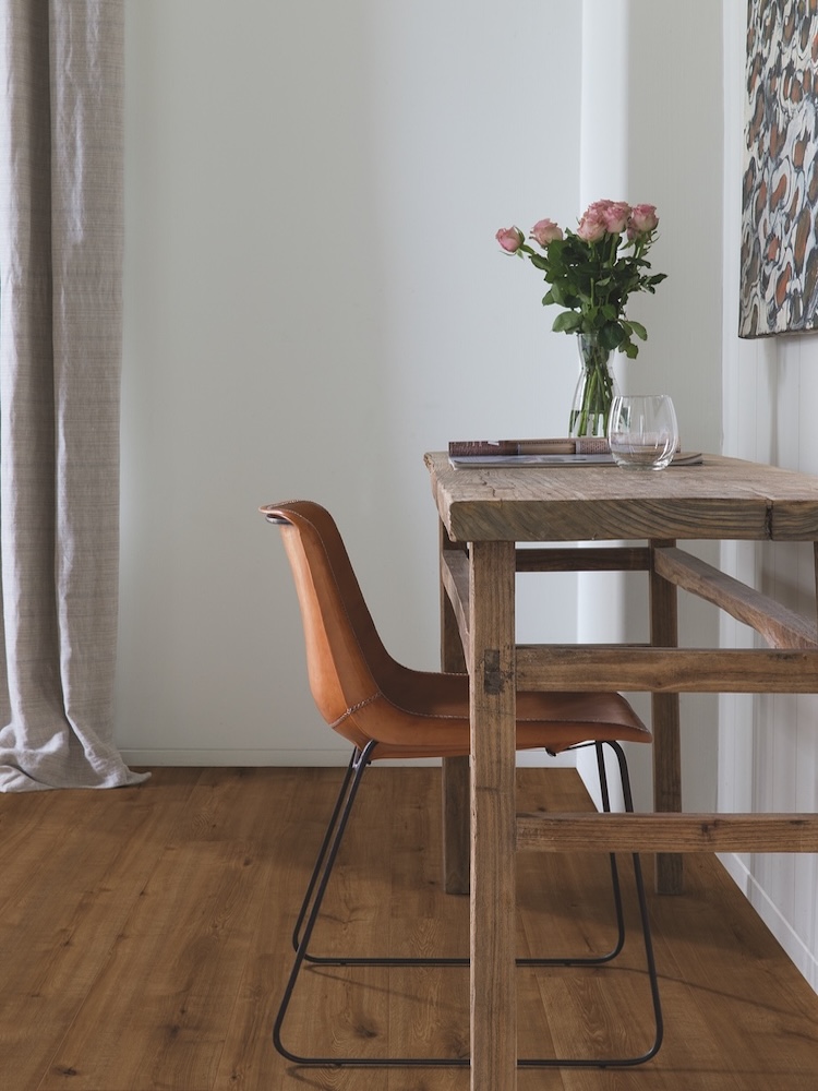 Laminátová podlaha Vitality Style poskytuje útulný a príjemný pocit vďaka svojej kartáčovanej štruktúre alebo štruktúre dreva. Podlaha je vhodná do každej obývačky alebo spálne.